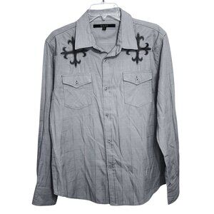 CJ Black Mens Long Sleeve Button Down Gray Shirt - Size Large