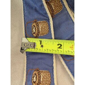 This embroidered belt from CJ Laing is crafted from cotton and features a unique basket pattern. The versatile D-ring closure provides an adjustable fit, making it suitable for various waist sizes. A stylish accessory that adds a playful touch to any outfit.