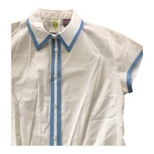C.J Laing button down white short sleeved blouse / shirt with blue trim size 4