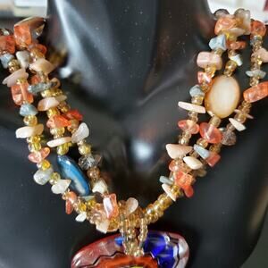 CJ Women Multilayered Glass Bead Resin Swirl Design Textured Pendant Necklace - Preowned