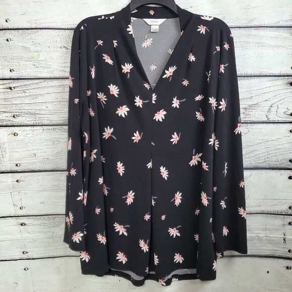 Reposhing this item I purchased from @threadzthingz. Loved it, but ready to rotate for something new. CJ Banks 1X Plus Black Floral LS Blouse. No visible flaws. Worn once since purchasing. Size 1X Measurements: approximately: Chest (across) 25" and Length: 28" - 32".