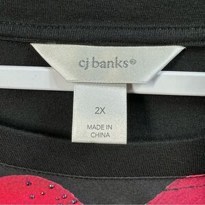CJ Banks Black Floral Knit Top Stretch Sparkle Accent Plus 2X