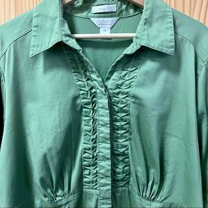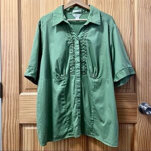 CJ Banks Christopher Banks green stretch short sleeve gathered bodice shirt 3x