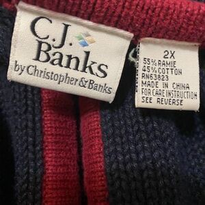 C. J. Banks Knit Navy with Burgundy trim pen cardigan, size 2X (55% Ramie, 45% Cotton)