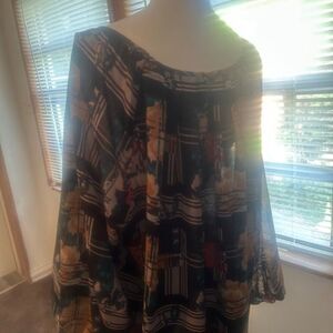 CJ Banks multi-color abstract print smock waist 3/4 sleeve top, size 2X (100% Polyester, Lining 100% Polyester)