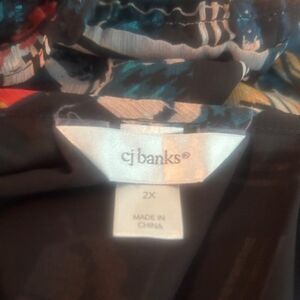 CJ Banks multi-color abstract print smock waist 3/4 sleeve top, size 2X