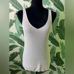 CJLA Cream Ribbed Knit Long Sweater Tank Size M