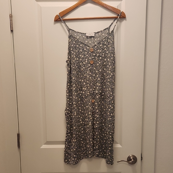 Chic floral dress with button-down front. Perfect for casual outings. Two middle buttons need to be sewn on, fell off when received. Like new, never worn.