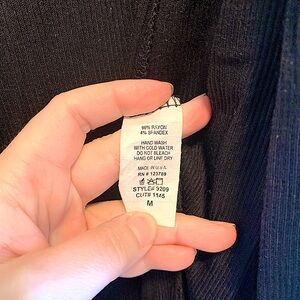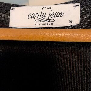 Carly Jean Los Angeles ribbed duster in black. Very similar to the CJ's Favorite Ribbed Cardigan but slightly more lightweight. This duster has two slits on the side and pockets. Worn only a few times, in good condition.
