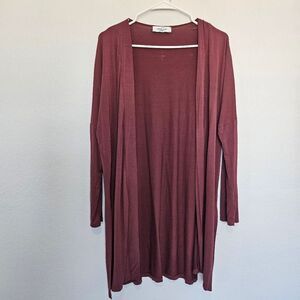CJLA | Side Slit Long Line Pocket Cardigan Rusted Burgundy, Womens Large