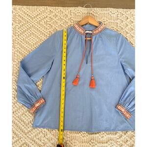 CK Bradley Norway Blouse Chambray Tassel Embroidered Collar Medium