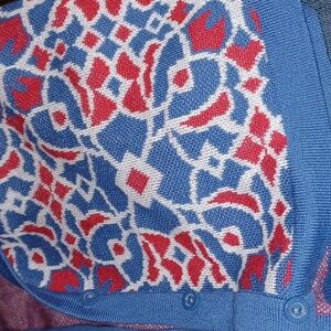 C&K Designs Beautiful Vintage Large Knit Red, White Blue Sweater Jacket Size L