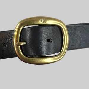 CK Italian Saddle Leather Belt in Black and Gold Women's Size Small