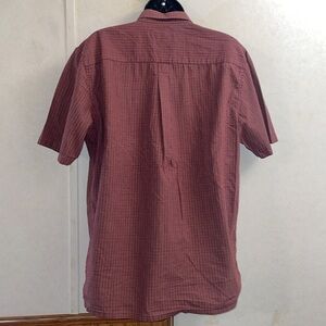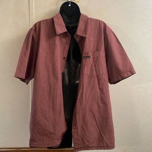Calvin Klein. Large Mens button up plaid maroon short sleeve shirt. No call outs smoke free home. GUC