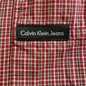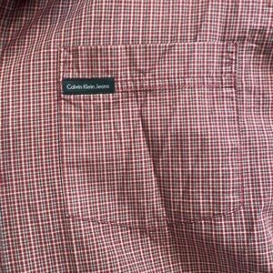 CK Mens button up plaid maroon short sleeve shirt. No call outs smoke free home.
