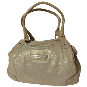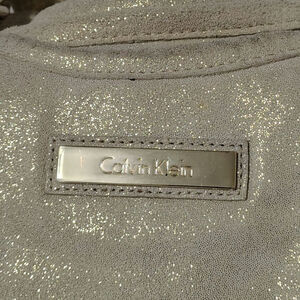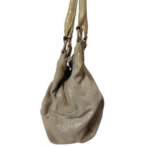 CK Metallic Cream Gold Specks Suede Calvin Klein Shoulder Bag Top Double Handle