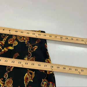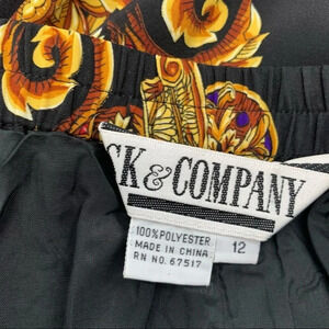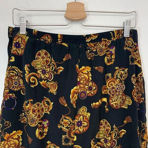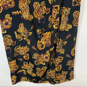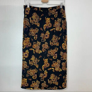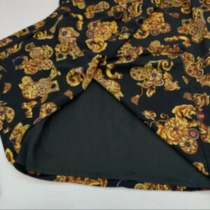CK Midi Skirt 12 Faux Wrap Black Gold Floral Print Classic Whimsy Goth Office//