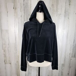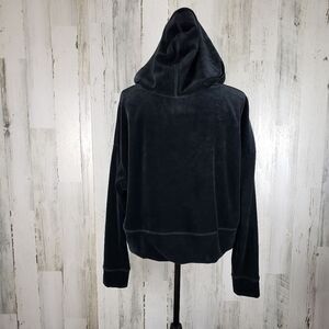 🌸 Description: Black velour hooded sweatshirt, midi length