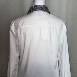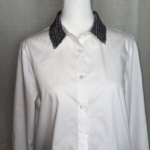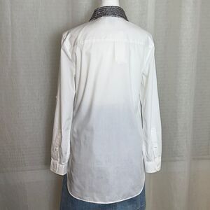 CK S Crisp White Porcelain Gray Sequined CollarโButton Down High Low Shirt