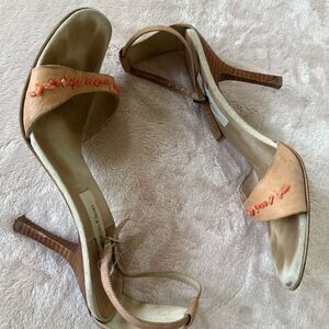 CK Calvin Klein Sandals Straps Coral Heel Summer Leather Used Shoes 8.5