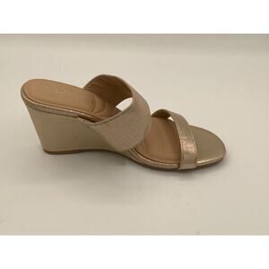 CL By Laundry Comfort Cushion Gold Strappy Wedge Slides Size 9.5
