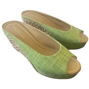 CL By Laundry Daysie Women’s Open Toe Linen Platform Slip On Heel Size-9/40 NIB