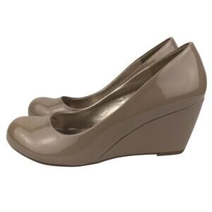 CL By Laundry Nima Wedge Pump Cream Nude Patent Faux Leather US 7W EU 37.5W Wide