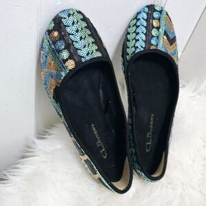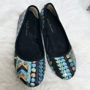 CL By Laundry Sequence Shiny Green Flats Size 7