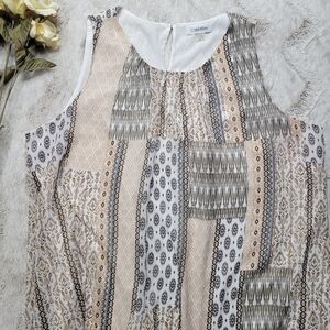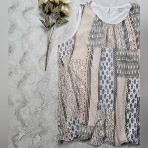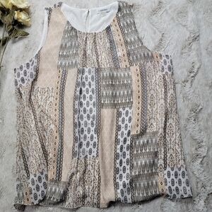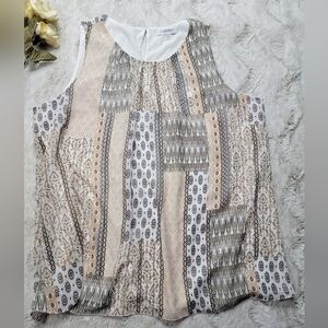 ✨️CL Calvin Klein Peach Beige Black Patch Print Sleeveless Blouse Size XL