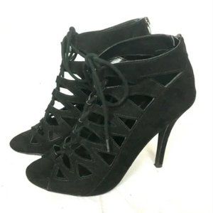 Chinese Laundry Z Lady Day Cutout Lace-Up Heels Suede Ankle Bootie BLACK SZ 7