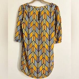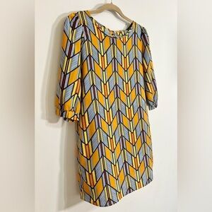 CL HEART 22 3/4 Sleeve Shift Dress Retro Geometric Colorful Aztec Bold Medium