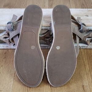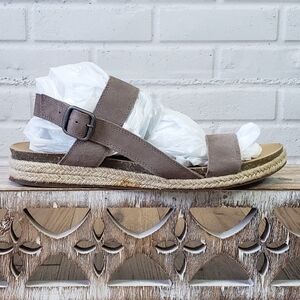 CL🚨 Lucky Brand Gadine Suede Espadrille Adjustable Sandal size 9.5 Grey Tan