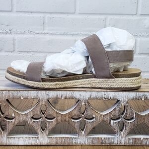 CL🚨 Lucky Brand Gadine Suede Espadrille Adjustable Sandal size 9.5 Grey Tan