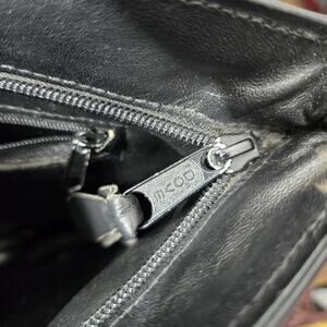 The C.L. Whiting Collection Leather Purse Handbag is a stylish medium-sized shoulder bag featuring a unique leaf design in black and tan. Made of leather with black hardware accents, this designer handbag is perfect for any woman looking to make a statement. The zip closure ensures your belongings are secure, while the black leather handle adds a touch of sophistication. Perfect for everyday use or special occasions, this purse is a must-have for those who appreciate quality craftsmanship and timeless style.