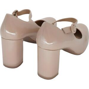 Polished Mary Jane heels elevate workdays and weddings with a glossy neutral finish and flattering silhouette shown in photos.