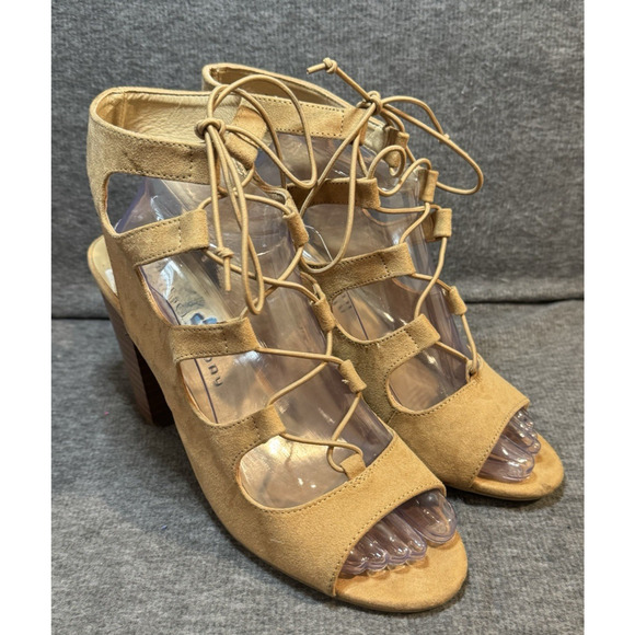 CL by LAUNDRY Tan Shoes Open Toe Block Heel Straps Lace Up - Women's Size 10