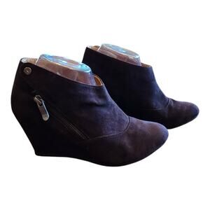 CL by Laundry Black Wedge Ankle Boots with Rounded Toe and High Heel 9M