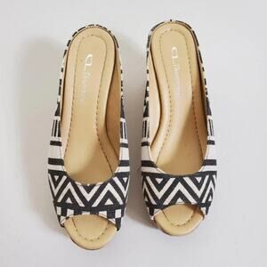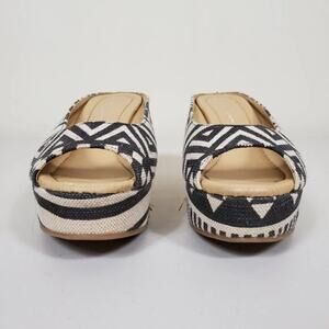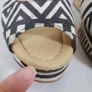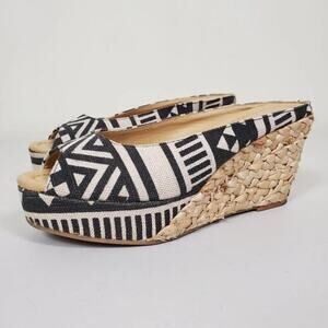 CL by Laundry Daysie Wedge Shoes Women Size 7.5 Black White Aztec Print Espadrille Canvas