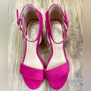 Don't miss out on the chance to elevate your shoe game with these fabulous fuchsia sandals. Grab them now and step out in style! #CLbyLaundry #DressSandal #FuchsiaFashion #BlockHeel #PlatformSandal #SummerStyle #NightOut #FashionStatement #PoshFinds #LikeNewCondition #Size6Shoes