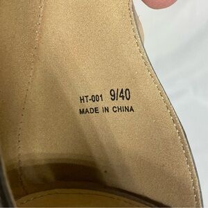 These shoes are in good used condition. They have some light signs of wear and a scuff mark as shown in photos. They are clean and disinfected. Color is gray and toe strap is lizard texture. Ankle strap is a dressed faux leather.