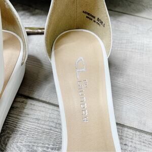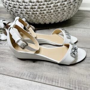 CL by Laundry Katherine Faux Leather Jeweled Low Wedge Sandals White Size 8M
