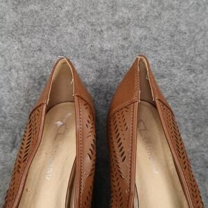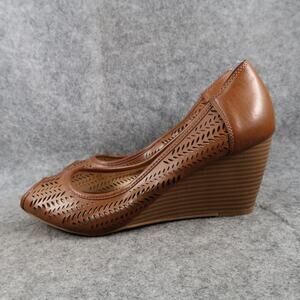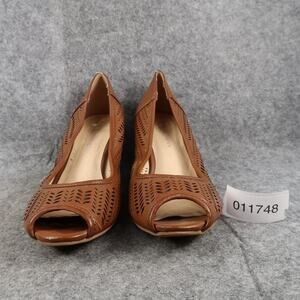Used CL by Laundry Shoes Womens 9 Peep Toe Wedges Fashion Perforated Slip On Brown