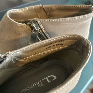 CL by Laundry Tan Ankle Booties with Suede Finish, Size 7.5