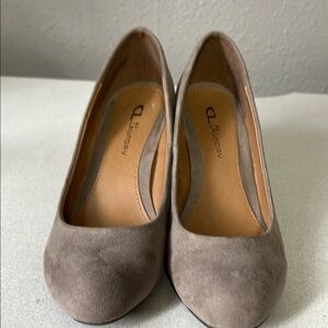 Elevate your style with these sophisticated tan heels from CL by Laundry. Featuring a classic pointed toe and a sleek stiletto heel, these shoes are crafted from a smooth suede-like material for a refined look. Perfect for formal or business occasions, they offer a timeless elegance that complements any wardrobe.