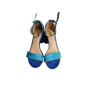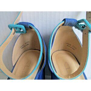 CL by Laundry Teal Royal Blue Block Heel Pumps Open Toe - Size 6.5M. Ankle strap, buckle closure. Signature padded insoles. 2-7/8" covered heels. All measurements are approximate. Please see photos for more details. (S25-09) 0525