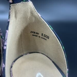 CL by Laundry Women 8.5M Navy Pink Floral Ankle Strap Block Heel Open Toe Sandal