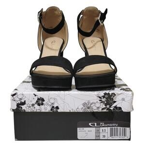 CL by Laundry Women Go-On Ankle Strap Platform Sandals Size US 8.5M Black