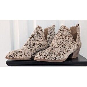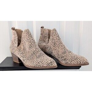 CL by Laundry Women Tan Faux Hide Leather Cheetah Print Slip-On Ankle Booties Boots in Good pre-loved condition.