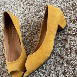 CL by Laundry mustard yellow suede peep toe low heels - size 9