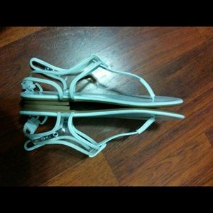 White plastic thong / T-strap sandals. Worn once. Selling it because its too big for me.